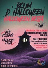 Une boum Halloween, déguisée aura lieu à Biltoki le 20 octobre 2024 de 19h à 21h pour tous les enfants (du ce1 à la 6ème).