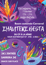 Une boom spéciale Carnaval pour les enfants du CP à la 6e est organisée par les parents d'élèves de l'école publique d'Ascain le samedi 7 février de 19h à 21h en salle Biltoki