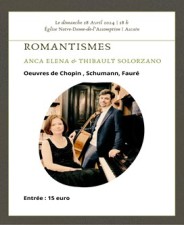 Dimanche 28 avril, concert joué par ANCA ELENA & THIBAULT SOLORZANO à 18h à l’église d’Ascain.