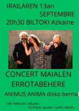 Maialen Errotabehere vous présente son nouveau disque ANIMUS ANIMA le vendredi 13 septembre à 20h30 à la salle Biltoki.