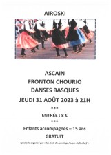 Danses Basques au fronton Chourio, le 31 août à 21h. Groupe AIROSKI