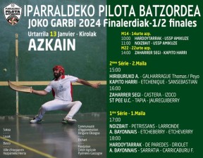 Le comité de pelote du pays basque organise les demi-finales de Joko Garbi le 13 et 14 janvier 2024 à partir de 10h au mur à gauche de Kiroleta à Ascain.