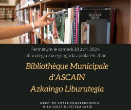 La bibliothèque sera exceptionnellement fermée le samedi 20 avril 2024.