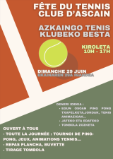 La fête du Tennis Club d'Ascain se déroulera le dimanche 29 juin à Kiroleta de 10h à 17h.