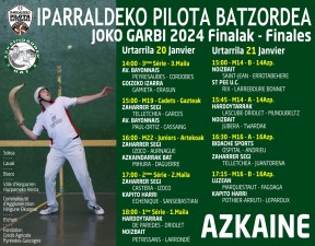 Le comité de pelote du pays basque organise les finales de Joko Garbi le 20 et 21 janvier 2024 au mur à gauche de Kiroleta à Ascain partir de 14h.