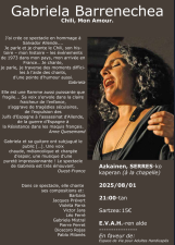 Gabriela Barrenechea sera sur scène dans la chapelle de Serres à Ascain pour jouer son spectacle Chili, mon amour. Un concert d’histoires engagé mais tout public, où l’artiste conte son passé sans jamais que le « beau » et la joie ne quittent la scène. Un parcours que la mort de Salvador Allende a fait en elle et en beaucoup d’autres depuis ce 11 septembre 1973.