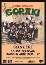 Concert du groupe Goraki le mardi 27 août à 21h à l'église d'Ascain !