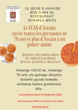 Le CCAS organise un goûter pour les séniors de plus de 70 ans d'Ascain au restaurant Achafla Baita le 09 janvier 2025 à 16h.