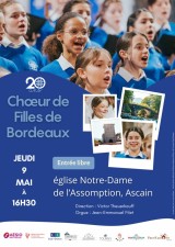 Les jeunes choristes du Chœur de filles de Bordeaux se produiront le jeudi 9 mai 2024 à 16h30 à l'église Notre-Dame de l'Assomption, Ascain.