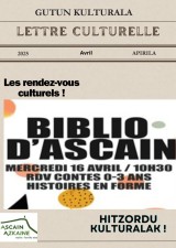 Nous avons le plaisir de vous présenter la lettre culturelle du mois d'avril 2025.gutun-kult-lettre-cult-2025-apirila-avril.pdf (pdf - 4Mo)