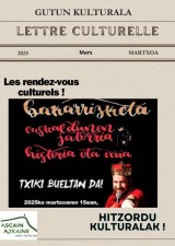 Nous avons le plaisir de vous présenter la lettre culturelle du mois de mars 2025.gutun-kult-lettre-cult-2025-martxoa-mars.pdf (pdf - 373Ko)