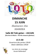 Les Amis du Jumelage Ascain Bollendorf organise un Loto le dimanche 15 juin 2025.