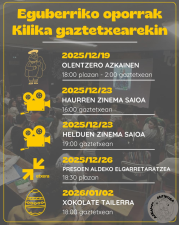 Le Gaztetxe Kilika d’Ascain propose un programme festif et convivial pour les vacances de Noël, avec des animations pour tous les âges. Cinéma, traditions, solidarité et gourmandise rythmeront cette fin d’année.