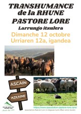 L’Association PASTORE LORE a pour but de soutenir les éleveurs de la Rhune, d’Esnaur et de Bizkarzun et dans ce cadre d’organiser un évènementiel annuel pour valoriser le pastoralisme. Organisée chaque année, le 2eme dimanche d’octobre, cet évènement a été créé pour valoriser et mettre en avant tout le travail pastoral des éleveurs.