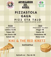 Le 20 avril, soirée Pizza / Talo et concert organisée par l'ikastola d'Ascain sur la place d'Ascain.