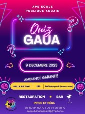 L'association des parents d'élèves de l'école publique organise un Quiz Gaua le samedi 9 décembre 2023 à la salle Biltoki à partir de 19h.