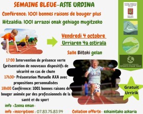 18h00 Conférence: 1001 bonnes raisons de bouger animée par des professionnels de la santé et du sport.