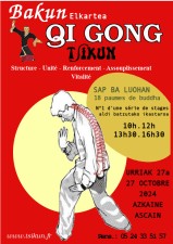 Le premier stage de Sap ba luohan / 18 paumes de buddha se tiendra le dimanche 27 octobre à Ascain, complexe multisport Kiroleta-luberriaga.