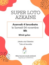 Super loto le samedi 4 novembre à la salle BilToki à partir de 18h