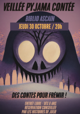Les Histoires de Julie vous propose une soirée pour frissonner de plaisir le jeudi 30 octobre à partir de 20h à la bibliothèque municipale d'Ascain. Venez écouter des contes pour frémir en cette veille d'Halloween. L'entrée est libre et dès 6 ans.